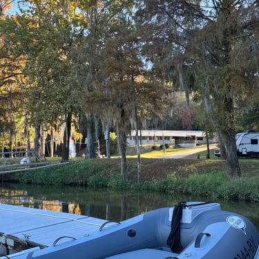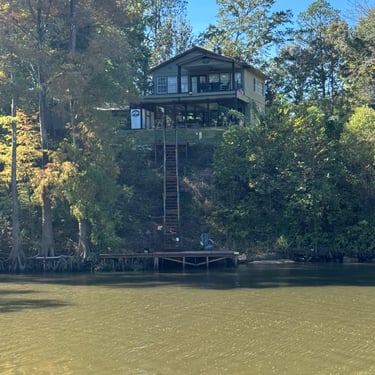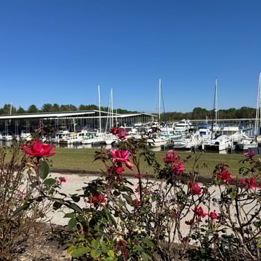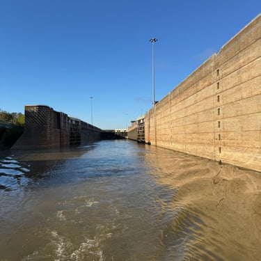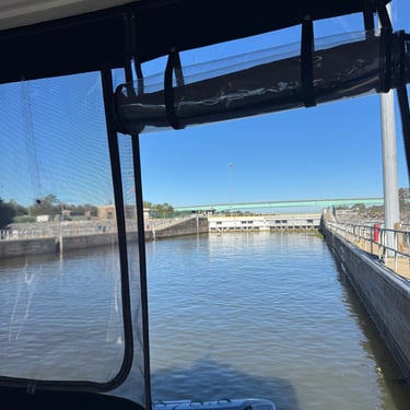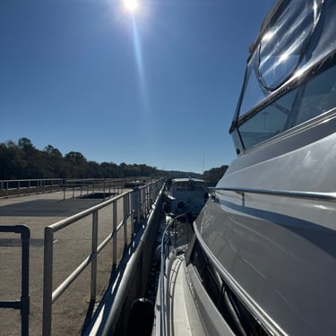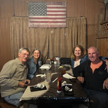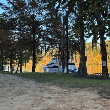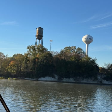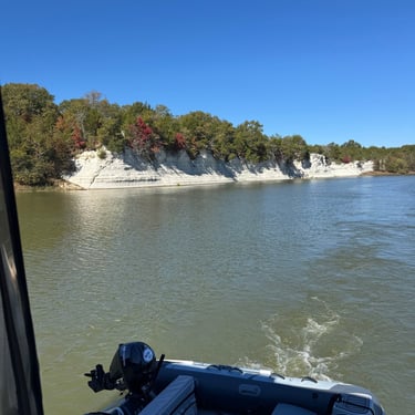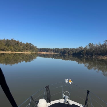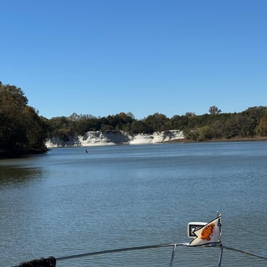Monday we left Lower Cooks anchorage on the Tenn-Tom early to get to Heflin Lock 12 miles away. We went through with 3 other boats and then headed to Kingfisher Bay Marina near Demopolis, Alabama. On the way there we saw the White Cliffs of Epes! These are chalk formations deposited about the same time as England's White Cliffs of Dover. They were stunning! We arrived late afternoon to Kingfisher Bay Marina. We walked into town and ate at SVH Bistro with Kacey and Jim from Current Affair. They have done the loop before so they gave us some great tips!