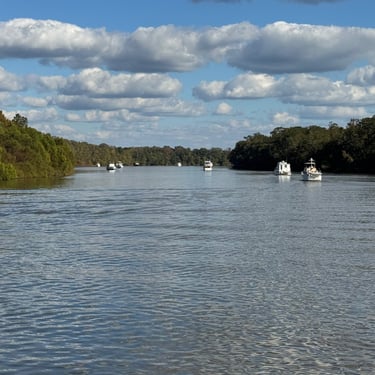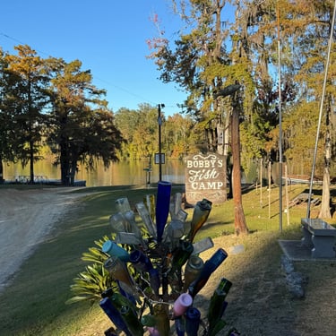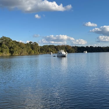 Thursday was cause for celebration as we went through our final lock of the inland rivers!! This is Coffeeville Lock and we made it though pretty easily early that morning. By the way, Coffeeville is not named for the drink, but for General Coffee, a war hero in the early 1800s. The population is 263. We were not close enough to visit from Bobby's. It was too far to make it to Mobile that day so we found a popular anchorage called Tensaw, where the Tensaw meets the Tombigbee. There were a dozen other boats in there and it reminded us of the Leclaire Canal back home where many people anchor.