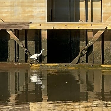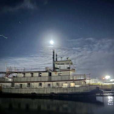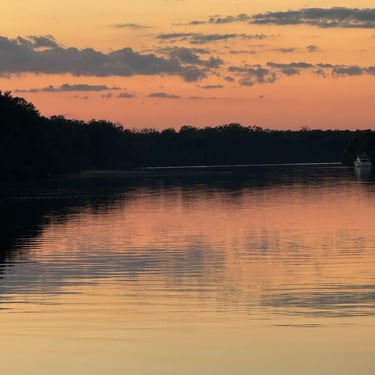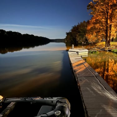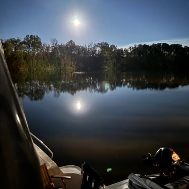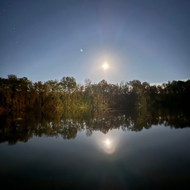 Wednesday we left Kingfisher Bay Marina with 7 other boats to get through nearby Demopolis Lock. This lock asks boaters to sign up the night before at the marina for either 6, 8, or 10 am. We opted for 8:00. I have really enjoyed the white birds that are around all of the time and especially in the locks. I believe they are called Egrets, but if anyone knows better please let me know! Our friends Bruce and Sarah sent us a photo of our boat leaving the lock. After leaving the lock we picked up speed so that we could make it to a dock at Bobby's Fish Camp. This was more popular in the past as they had a great restaurant with fresh fish. After the owner passed, his daughter and son-in-law still rent dockage so we opted for that as the anchorages before that were not as appealing to us. We made the 97 miles by 3:30. We had a nice evening there and heard jets training from the nearby Naval Air Station at Meridian, Mississippi, although we were in Alabama. We got some good photos of the "super moon" reflecting on the water that night.