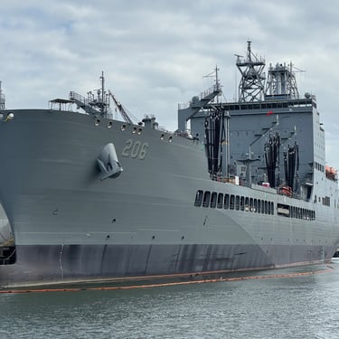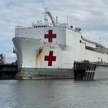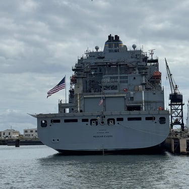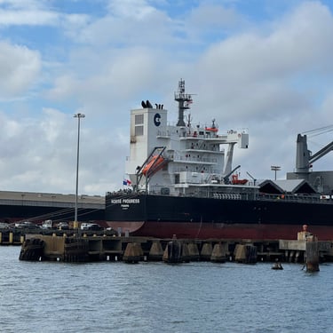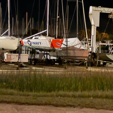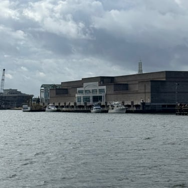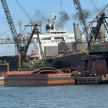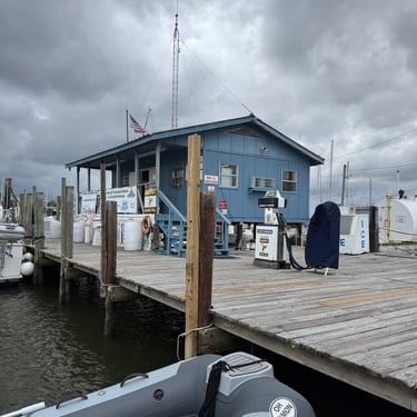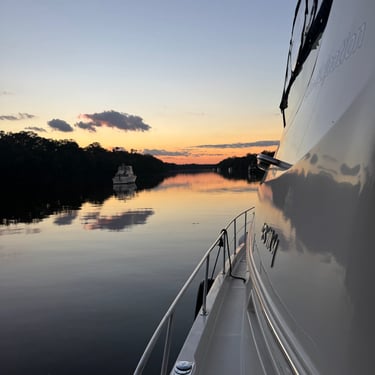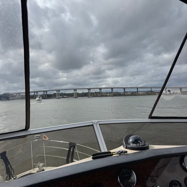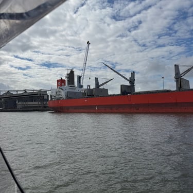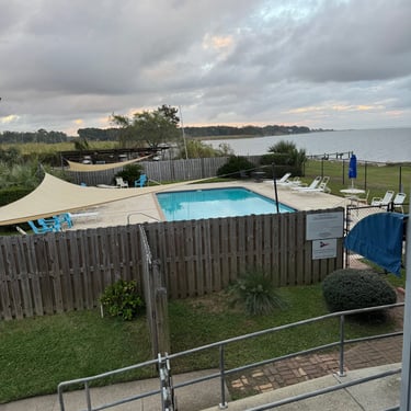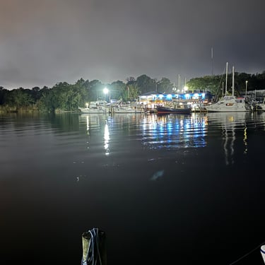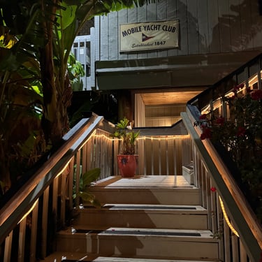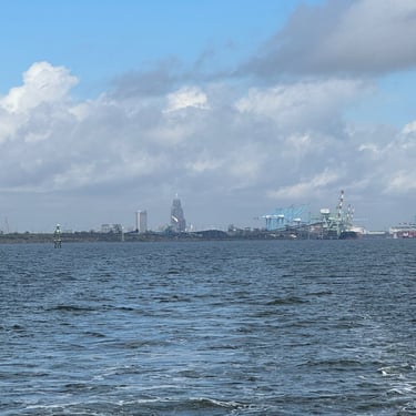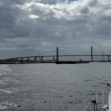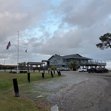 Friday was another day to celebrate as we made it to Mobile Bay in the Gulf of America!! It is quite the shipping port so it was very crowded with barges and large cargo ships. We also saw the downtown area where many boaters choose to stop and dock in front of the convention center. It was amazing to see the large equipment for loading the cargo ships, as well as the large naval ships. We then entered the bay and made our way to the channel to Dog River on the west side of the bay where we stayed for a few nights. We were about to turn where we thought we could for the channel, when our friend, Bob, from his boat "Southwind" behind us cautioned us not to turn too soon as there can be some shallows there. Bob and Wanda are not loopers but take there 50 foot Carver from Nashville to Marathon, FL every year. They have been a big help to us. The channel itself was a bit shallow at times but we made it successfully to Dog River Marina. There are lots of marinas around, but they are all filled to capacity with mostly loopers, so we were happy to get a spot! For dinner we learned that it was a short walk to the Mobile Yacht Club where we had dinner. They are mostly a sailing club. It was an awesome dinner and we enjoyed talking to a few other boaters. We will be exploring downtown Mobile and heading to a marina on the east side of Mobile Bay and then make our way over to Orange Beach on the ICW soon!
