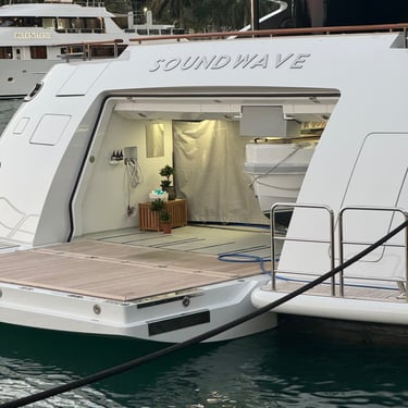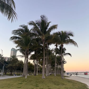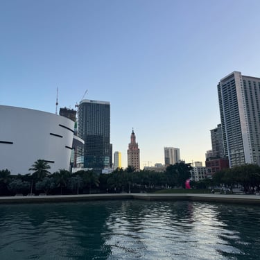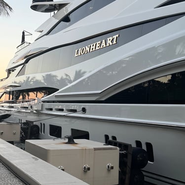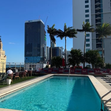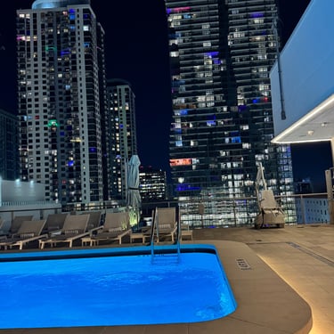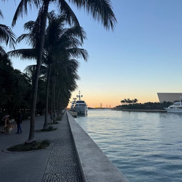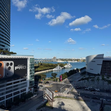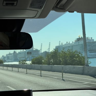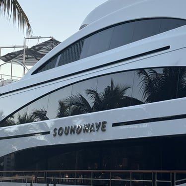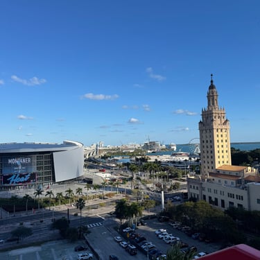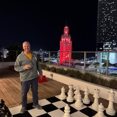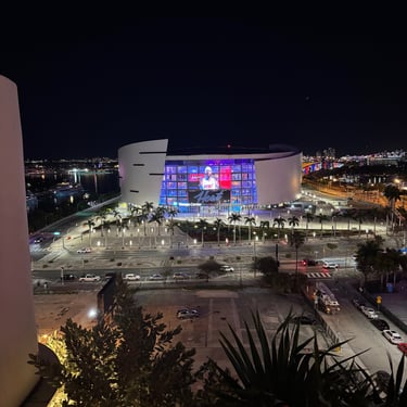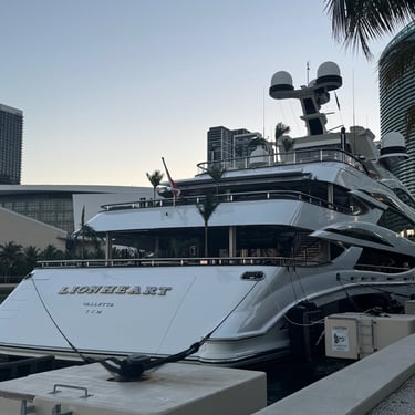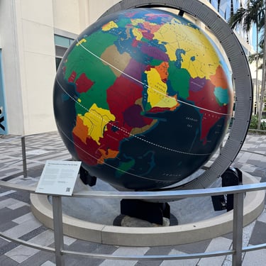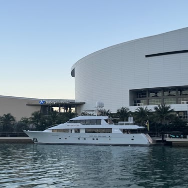 On Tuesday, February 10 we drove to the Miami Boat Show with Looper friends Belita and Herb (boat First Light). They had rented a car for the 3 hour road trip and invited us to go! We left on Tuesday so we could attend the show for 2 full days, Wednesday and Thursday. Tim and I stayed at CitizenM using Marriott points and the location was amazing. We were in the heart of downtown near the Freedom Tower, Miami Dade College, a walking pier with large yachts, the Kaseya Center where the Miami Heat play, many tall condos, and the port where all of the cruise ships come in. We walked around and took it all in, including some "mega-yachts" called Lionheart and Soundwave. CitizenM has a great rooftop pool and bar with stunning views. We enjoyed the view, along with a "life-size" chess game up there. The area also has many shops and restaurants and we enjoyed breakfast at a French cafe called Sweet Paris. They also have preserved the original Pan Am Globe from the old Pan Am airlines that used to be in the airplane terminal in the 1930s.
