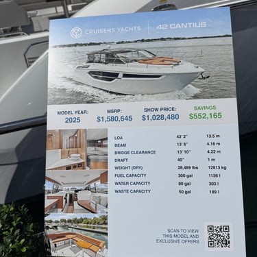 Belita and Herb picked us up for our "day 1" of the Miami Boat Show. We did the convention center portion on that day. We bought some items and talked to RayMarine about some issues we were having. Of course we looked at many boats as well. That evening we all had pizza up on the rooftop bar at CitizenM. Thursday was our "day 2" and we went to one of the outdoor locations where the boats were in the water. We went to the Miami Beach Collins Avenue location that I heard called "millionaire row". The boats were surrounded by huge mansions on one side, and condos and hotels on the other side. It was fun to see the older buildings on Miami Beach on the way there. We looked at Cruisers Yachts (maybe our next boat?), Princess Yachts, Beneteaus, and even a Palm Beach yacht (definitely out of our price range). On the way back to Fort Myers Beach we had a lot more traffic so we ended the evening with dinner at Doc Ford's Rum Bar and Grille on the Fort Myers side of the bridge.