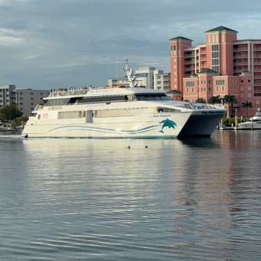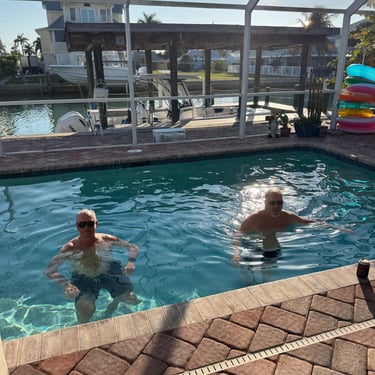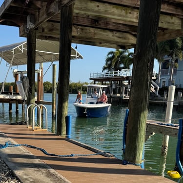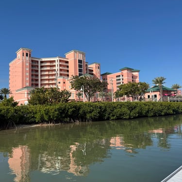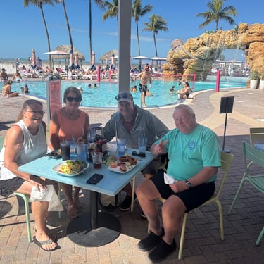 On Friday, February 13, back at Pink Shell, they needed us to move to a mooring ball since someone had already reserved our slip. We still had all the amazing amenities of the resort though. We did well attaching to it! I grabbed the "eye" with a boat hook and was surprised how heavy that part was to lift, but I managed. We took the dinghy down to Snook Bight Marina and had lunch and got provisions at the Publix next door. We enjoyed some amazing sunsets while on the mooring ball. Saturday we took the dinghy over to breakfast and pool time at the hotel and later took it to Snug Harbor for dinner with 3 looper couples. Belita and Herb were there as well as Dwayne and Michelle (past loopers) and Brenda and Colby (6 weeks in on first loop). Belita and Herb are actually on their third loop! Sunday we were able to see Kirk and Carol from back home, who are another couple who winter down here. They were staying in Cape Coral.