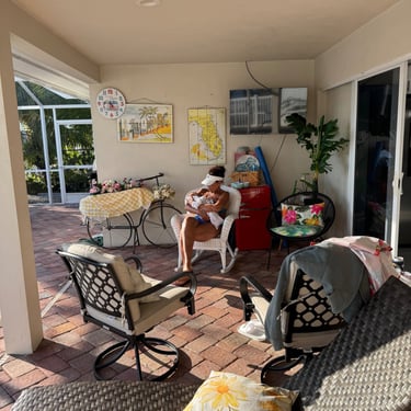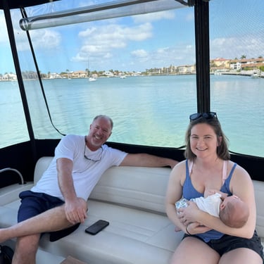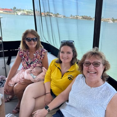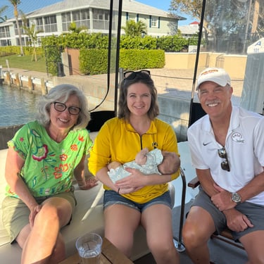 Monday, February 16 we had a surprise visit from our daughter Caitlin, and 7-week-old granddaughter, Claire! She had called the day before and said her husband, Henry, gave her this trip for Valentine's Day! He and their 1 and a half year-old son, Connor, stayed behind. When she called Sunday we figured the best time was now so she and Claire flew in the next day and got an Uber to Pink Shell Resort in Fort Myers Beach! By this time we were back in a slip instead of a mooring ball. We enjoyed the reunion and then dinner at Rae's Italian at Pink Shell. Tuesday we cruised for 4 hours to Esplanade Marina in Marco Island. Claire did well and it was a smooth ride! We had lunch at Mango's and then our friends Kathie and Bill met us for dinner at Deep Lagoon. The next day they picked us up and took us to their rental on Isle of Capri where they had a pool and their boat from back home. They stay a few months each winter. They treated us to lunch and also a home-cooked steak dinner they made from good Illinois steak and corn they had brought with them. During the day I stayed at their place with Claire since she is so small, and the rest went to the beach. Kathie and Bill were so good to us and Bill even drove Caitlin and Claire to the airport Friday morning at "0 dark 30!" (4:30 am)!