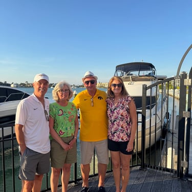 On Thursday, February 19 we got to see friends from the Lindsay Park Yacht Club back home who were again down here for a visit. It was an unplanned visit since they did not know we were here but just happened to see our boat in front of Mango's where they were eating! It was great to see Deb and Dan and they even graciously bought us lunch at CJs on the Bay here at Esplanade! Deb also walked to some shops with me, Caitlin and Claire and helped us pick out Marco Island swag. On Thursday and Friday we got to see some old friends who winter down here too. Mary Anne and Darryl, former residents of Bettendorf and our church back home, came over to the boat from their nearby condo. They also took us to the beach on Friday, bought us lunch, and gave us a great tour of the many hotels, homes and condos on the southern end of the island! They also gifted us with local honey, jelly, and marmalade! They attend Marco Lutheran down here and we learned it is very close to the Marina, so we are excited to go there on Sunday. Stay tuned for that and more adventures as we await Tim's sister and brother-in-law from Wisconsin to arrive.