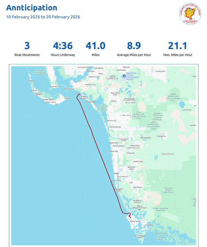 Miami Boat Show, First Mooring Ball at Ft. Myers Beach, Seeing many more friends and Surprise Visit from Caitlin and Claire and on to Marco Island