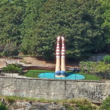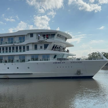Friday we saw Downton St. Louis , including the Arch! Before downtown we needed to get through 2 locks so it was helpful to have 7 other boats and it helped that the cruise ship American Serenade was traveling through so they put us with the cruise ship. Left at 7 and didn't get to the Arch until about noon due to the lock waits. The arch was fun to see and get the photo. Still made it way south to a popular anchorage, the Kaskaski Lock Wall which is just off the Mississipi toward the Kaskaski River. They are under construction so just anchored there whereas in the past loopers were allowed to attach to the wall. It was again 93 degrees and so took awhile to cool the boat down. In addition, our generator has a possible leak so will be getting that looked at when we get to Green Turtle Bay. There were 2 other boats anchoring there also.