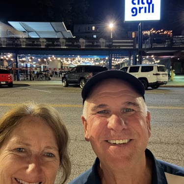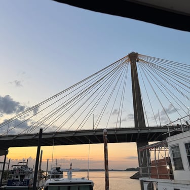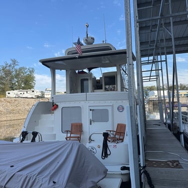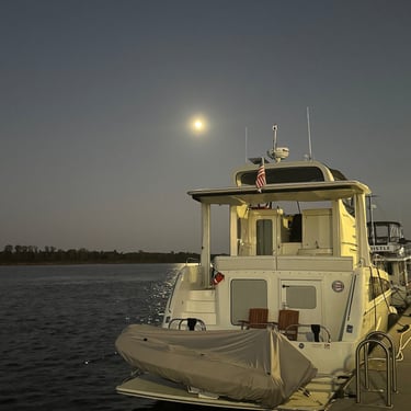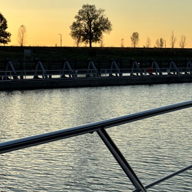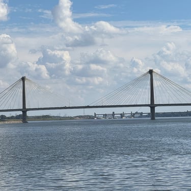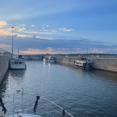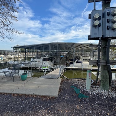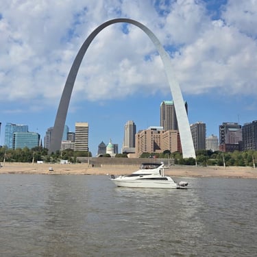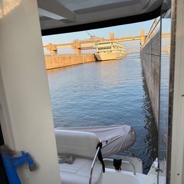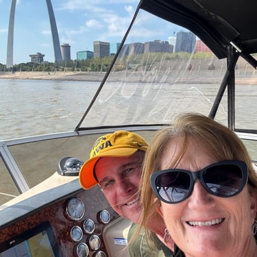 On Thursday we took a short journey to the Alton Marina in Alton, IL still upstream from St. Louis. The next 2 days we would need to anchor as there are no marinas so needed to stock up on a few supplies. This is a very nice marina and we're glad we had time to see it. We also had our first "dock tales" which is a meet and greet with fellow loopers. We were invited to this through the Nebo app and we were planning for the next day to travel together through 2 locks and seeing the St. Louis Gateway Arch so we could get the coveted photo of our boats individually under the arch. Tim and I walked to dinner to nearby Bluff City Grill and also watched the Padres/Cubs game.