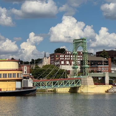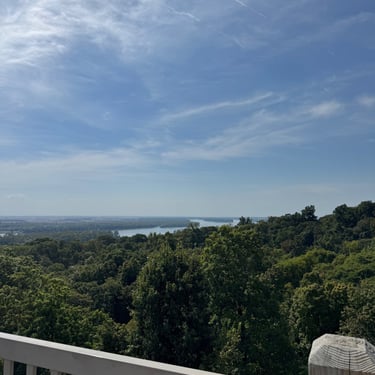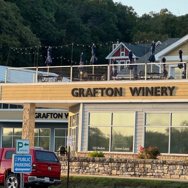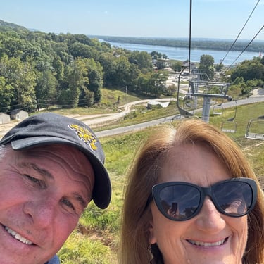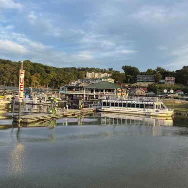 Monday we had a smooth ride from Two Rivers Marina in Louisiana, MO to Grafton Harbor in Grafton, IL. Went through 2 locks no wait! Now we are officially on the Great American Loop route!! This is where the Mississippi River meets the Illinois River. Many loopers are coming down the Illinois River and we met a few! Grafton Harbor is right downtown and in a word Grafton is "FUN". It's all shops, bars, and restaurants. The marina is huge and it also has its own restaurant and pool. Highlights were Grafton Winery, Aeries Sky Tour (gondolas) up to their restaurant and amazing views, and then the Oyster Bar at the marina.