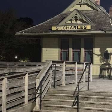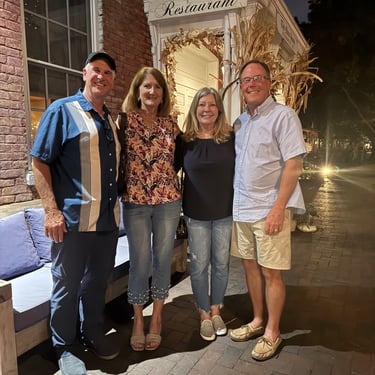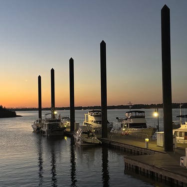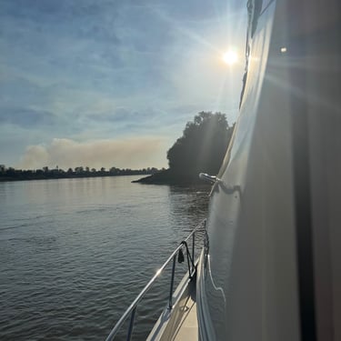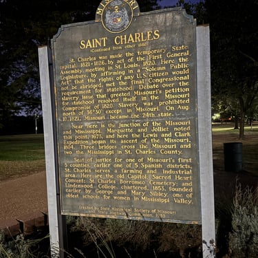 After staying in Grafton Monday and Tuesday it was time to have an issue checked with the electronic shifter as it was having trouble going in reverse. We found a wonderful marina just across the river in St. Charles, Missouri called Uncharted and they were able to work on it and fix it on Wednesday and they had a nice marina we stayed at until Thursday. An even bigger bonus was that we were able to see good friends, John and Jo Hoscheidt, who had moved to St. Louis a year ago! Amazingly they drove 50 minutes to pick us up, then 20 minutes back to beautiful historic St. Charles, then took us back and had to drive back home. It was so kind of them and they also treated us to dinner at the Main House. So grateful to them and so enjoyed seeing them. We were hoping to get them on the boat to continue on to Alton and St. Louis but their schedule didn't permit. We hope they join us on some part of the Loop!