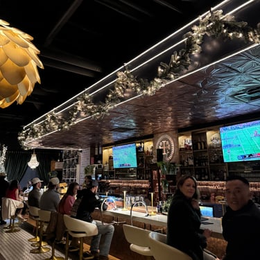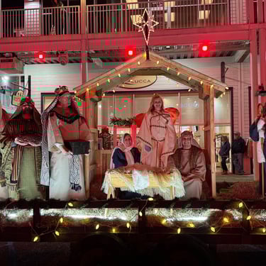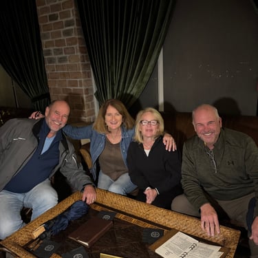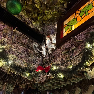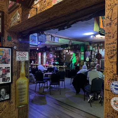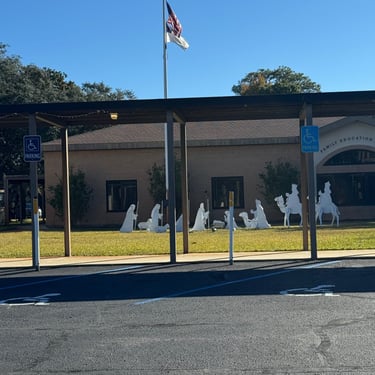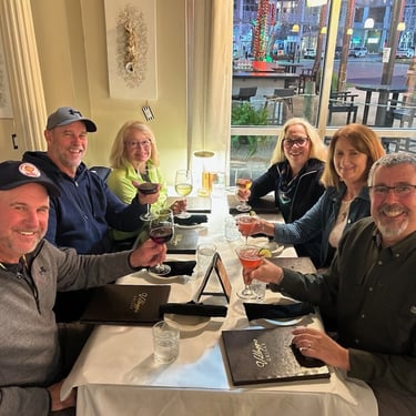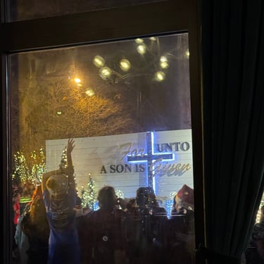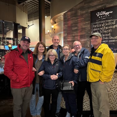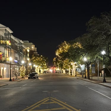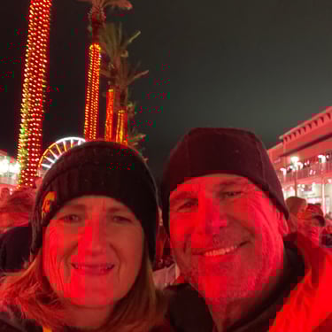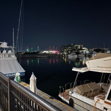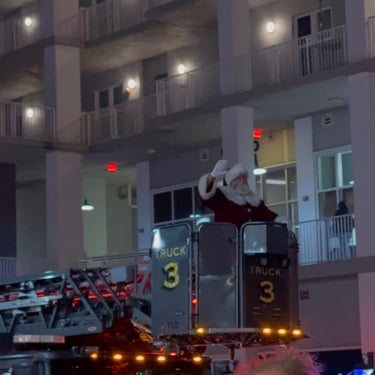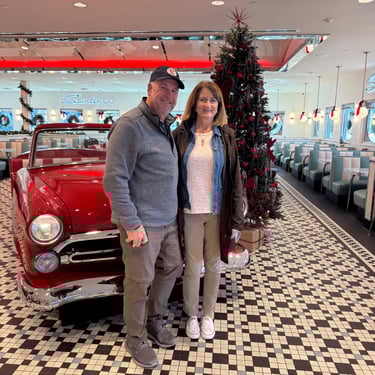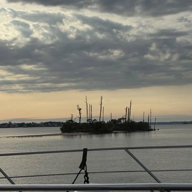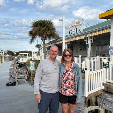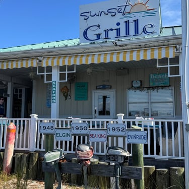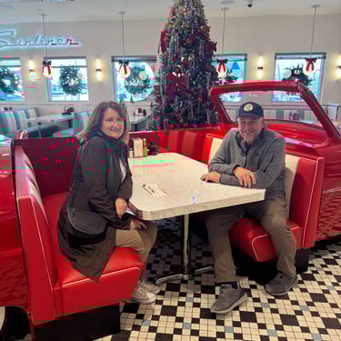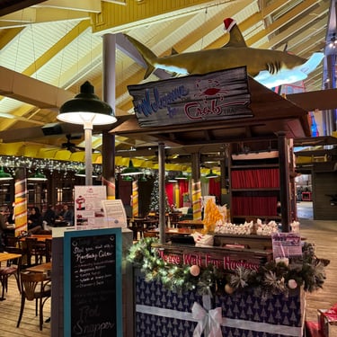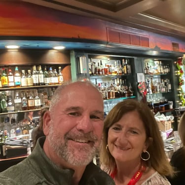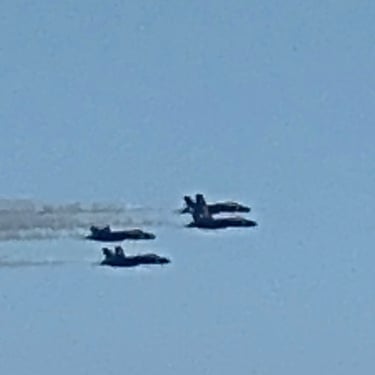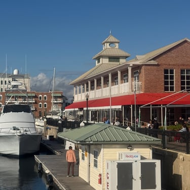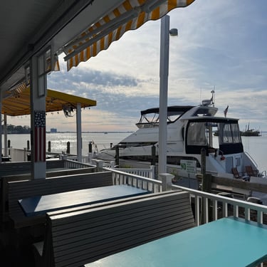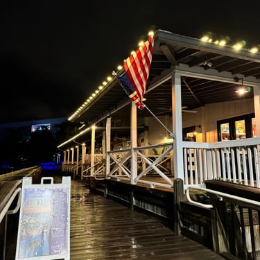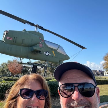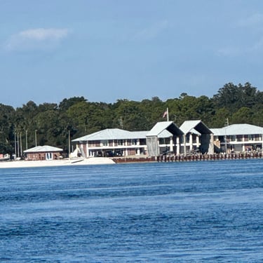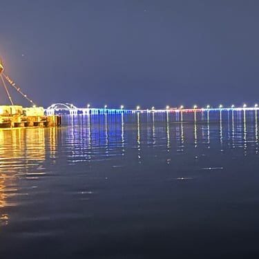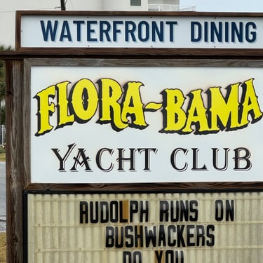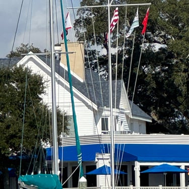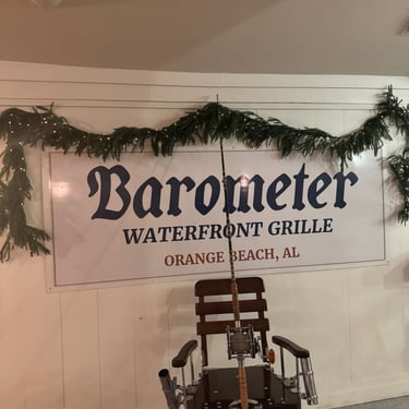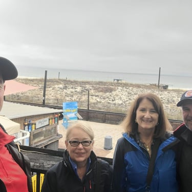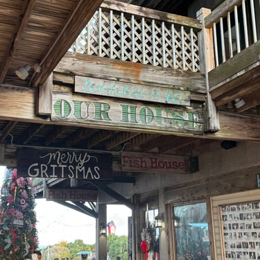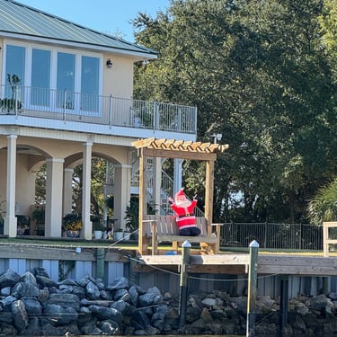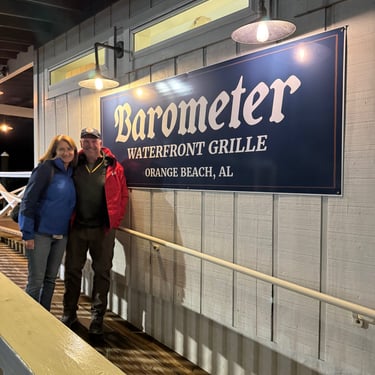 We came back after a wonderful Thanksgiving seeing family and friends. Since we were flying home again in 17 days for Christmas, we did not travel too far. We stayed longer at the Wharf in Orange Beach, Alabama than we thought due to a week of rainy cold weather. Despite this we were able to participate in activities at the Wharf, as well as renting a car to explore more of Orange Beach and Gulf Shores. The Wharf hosted a tree lighting complete with a visit from Santa by firetruck, a live nativity scene by a local church, and a drone show with Christmas designs. Our friends Roylana and Yves joined us for the tree lighting and dinner. We did have one nice weather day so we, along with our friend Todd from back home, took the boat to Perdido Key and had lunch at Sunset Grille. On the way there we got a photo of the Blue Angels practicing! Another highlight was that we finally got to see our other Canadian friends, Barb and Donn, who had been held up for a while due to mechanical issues on their boat! We had many fun dinners and even found the hidden speakeasy near the jewelry store at The Wharf. A password is needed to enter the door that looks like a vault door. We also reconnected with John and Claire who we had not seen since Paris Landing. Another car trip was to the infamous Flora-Bama bar and nightclub that is located on the Florida and Alabama border. Also, Tim and I had breakfast at a 50s diner called Sunliner in Orange Beach. We finally left the Wharf on December 12 to head to Pensacola!