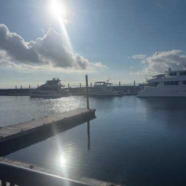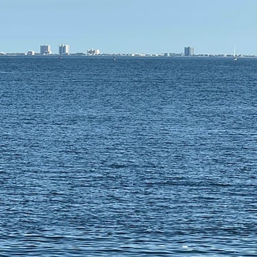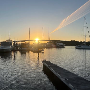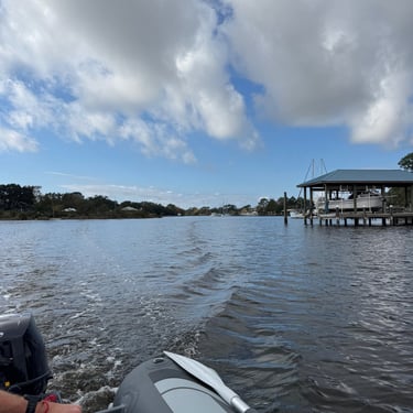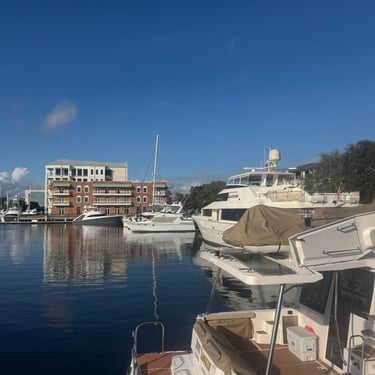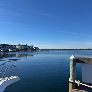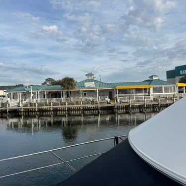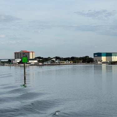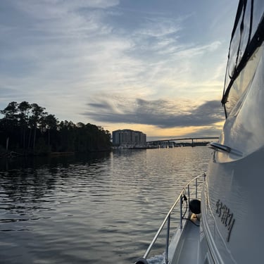 Monday, December 15 we left Pensacola for the Ft. Walton Beach area to a marina called Two George's in Shalimar. It was again a beautiful ride, though chilly. Once here we got settled in and then walked to dinner at Twisted Grape Wine Bar and Cafe. There was a freeze warning that night so the water at the marina was turned off until late the next morning, which was challenging since we wanted to get the salt spray rinsed off of our boat. We took a walk and got some photos of the area condos and water views. Later we rented a car so that we could drive ourselves to Pensacola Airport on Wednesday. With the car we drove to nearby Ft. Walton Beach to the Boardwalk. We enjoyed the beautiful white sands and sunset, views of the pier, shopping, and dinner at The Crab Trap. Wednesday we headed home until January 7th. The next blog will be after that when we move to Carabelle and wait for a good weather window to cross the Gulf! Merry Christmas and Happy New Year!