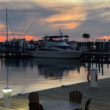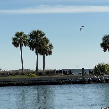 Monday, January 12 we moved from Panama City, Florida to Port St. Joe, Florida. We saw lots of dolphins along the way. We also saw F22s practicing from nearby Tyndall Air Force Base. We had a nice ride, although parts of the Intracostal Waterway and Gulf County Canal were a bit narrow. Port St. Joe was a great spot to spend several days. The marina, called Point South, is newly remodeled and has a fantastic staff and ship store. They are in the process of building a restaurant also. The town is quite charming and has many nearby restaurants and shops. Everything was easy to walk to. The waterfront has the historic Cape San Blas lighthouse as well as new townhomes near the water. We were there until Friday so visited several restaurants. We ate at Provisions, Sisters Bistro, Joe Mama's, Quatro Locos, and The White Marlin. We also enjoyed music bingo at the Haughty Heron bar and package store. Everyone we met was very friendly and welcoming!