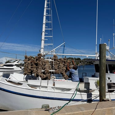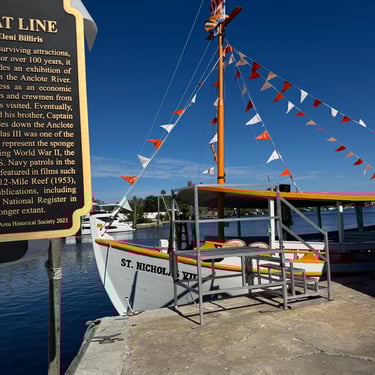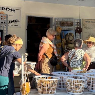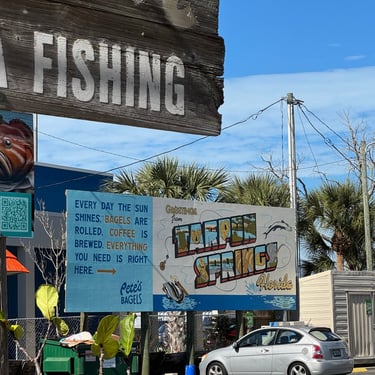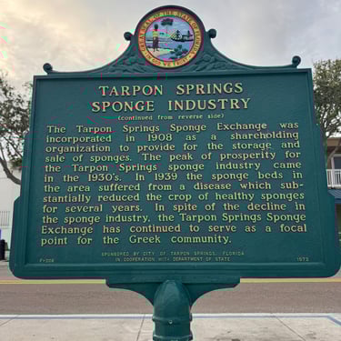 Saturday we went up the Anclote River to nearby Tarpon Springs. The city marina is very nice with friendly staff and is right in the sponge dock area. Tarpon Springs is known as the "Sponge Capital of the World". It also has a strong Greek heritage. There is one main block of restaurants (mostly Greek food), sponge boats, and shops. Saturday was finally a warm and sunny 70 degree day so we soaked up the sun and had lunch with our friend Steve who winters in nearby Clearwater! We went to the popular Rusty Bellies and had a drink near our boat at the Dock Waterfront Grill. Later we ate at the famous Hellas Greek Restaurant and Bakery and watched the Denver-Bills game at Costa's. Sunday brought cold , 50 mph wind gusts and rain so we stayed on the boat until the afternoon. We went to Dimitri's on the Water for excellent gyros, and then shopped for (you guessed it!) sponges, and Tarpon Springs swag, greek olives, wine, and cheese. Tomorrow we head to Madeira Beach Marina a few miles down near Clearwater and plan to see more friends there!
