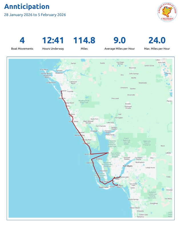 Seeing lots of friends in Venice, Punta Gorda, Cape Coral and Ft. Myers, Florida