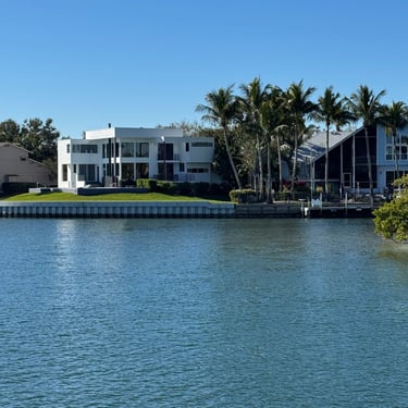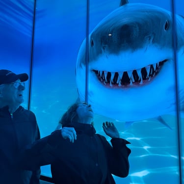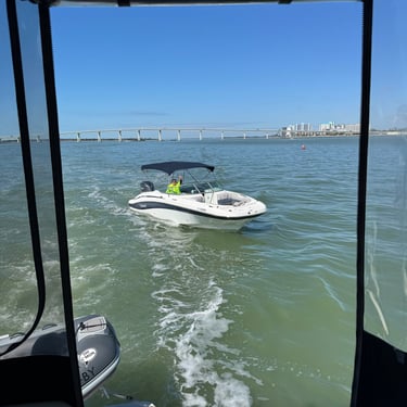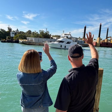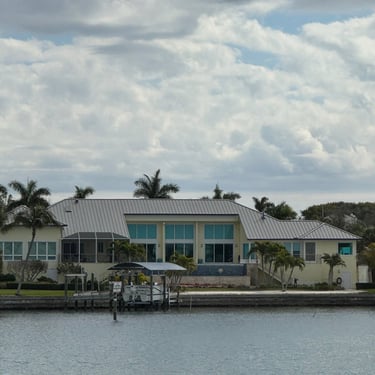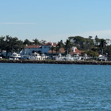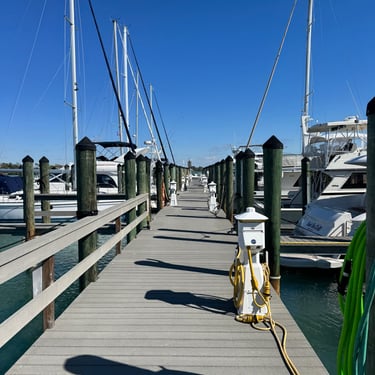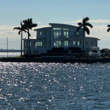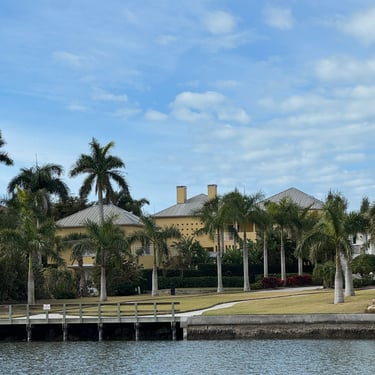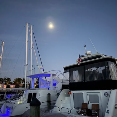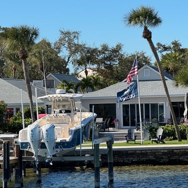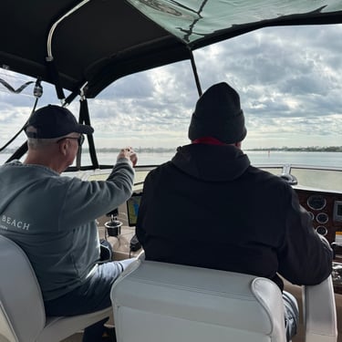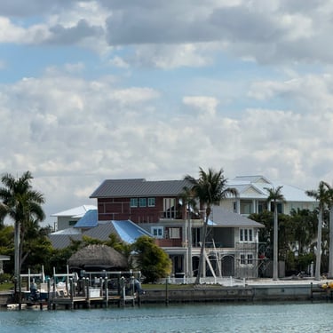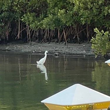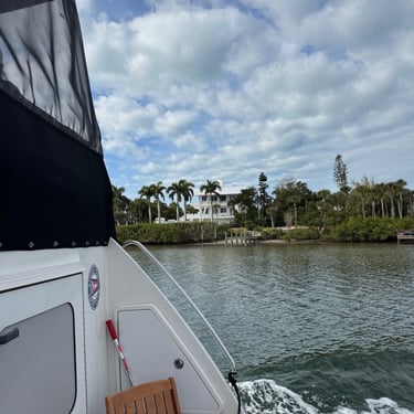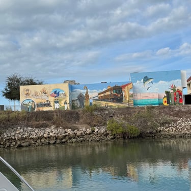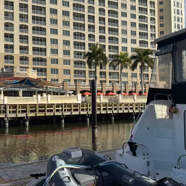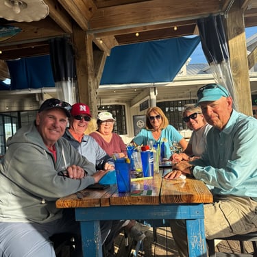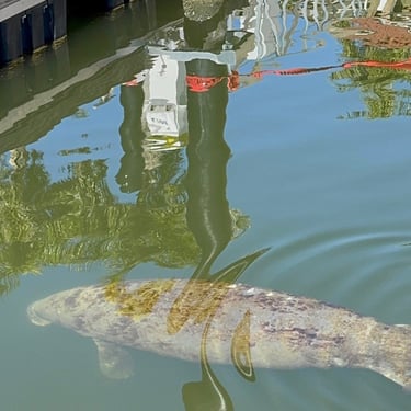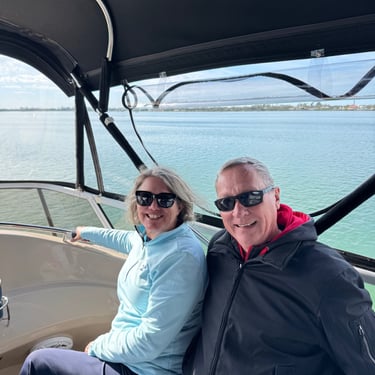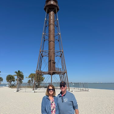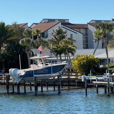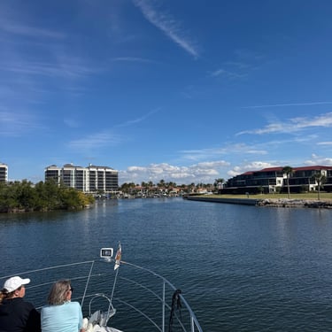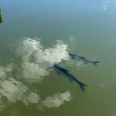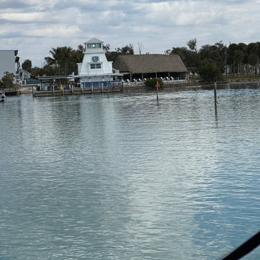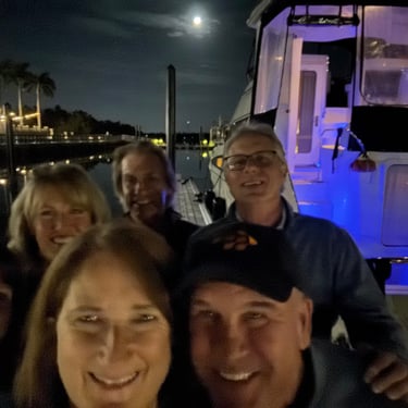 Monday, February 2, we were excited to head to Fort Myers to see my friend I've known since third grade, Tanya and her husband John. On the way back through Charlotte Harbor it was a bit rough but passable. Tanya and John live in The Landings off of the Caloosahatchee River which has a marina. We were going to bring our boat right to the marina, but along the way we talked to their captain and he said with our 3.5 foot draft it would be tough to make it in. The unusually low winter tides and cold weather were causing the marina to have a shallow entrance. After calling a few other places close by, there were no spots for us so we backtracked to nearby Cape Coral to Tarpon Point Marina. Unfortunately the winds there made docking a bit tough and a bracket holding the dinghy broke. (The winds a few days before had already torn one of our vinyl eisenglass screens in the back of the boat.) Anyway, we were able to repair the dinghy bracket the next day so all is well again! Not sure when the eisenglass can be repaired but clear packing tape is holding it for now! The good news was that Tanya and John graciously picked us up and still took us to their beautiful home and cooked dinner for us and then took us back to the marina! They offered to house us but we were still worried about the winds and the boat. John also took Tim to the hardware store so that he could get the part to fix the bracket. It was so fun to meet John and to catch up with Tanya after many years apart. Tuesday the weather was still a bit cool so they again picked us up and drove us to Sanibel and Captivia Islands. These are beautiful areas and really took a hit during Hurricane Ian but it was nice to see much of it has recovered. The popular Mucky Duck is still in disrepair though. We walked along the Lighthouse Beach in Sanibel and ate in Captiva at Green Flash. They showed us many places including Tween Waters Resort which is now on our list of places to go in the future! On the way back they again helped us with a hardware and Publix stop for provisions. Later that evening we got to see other friends from back home, Kim and Butch, who winter in Fort Myers, where Keith and Marcia were staying. We all had dinner at High Tide Social Club which is in Tarpon Point where our boat was. Tarpon Point itself has great shops, hotels and restaurants. One advantage of the cold spell was that many bullsharks made their way into the marina so we got good photos of those. We also saw our first and only manatee swim through there, and also saw 2 tarpons.