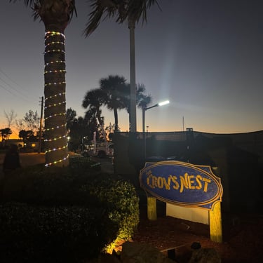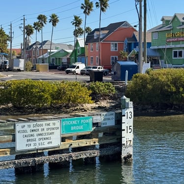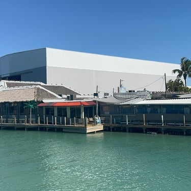 On Wednesday, January 28 we left Sarasota for Venice. We had been on this route before a few years ago on a rental boat. There are beautiful homes along the way, especially in Siesta Key. We took photos of some of the spots we knew from being here before such as Pop's Sunset Grill in Nokomis, and the Casey Key Fish House and Tiki bar with a beach. On the way we waited for several bridges to open, most of which are scheduled but we did have to call one of them. We rented a slip at the Venice Yacht Club for 2 days. It is very nice facility and the dockmaster and staff were helpful and welcoming. That night we walked to nearby Crows Nest Tavern for dinner with Todd who was staying at their marina.