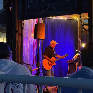 On Friday, January 30, we cruised with 2 other couples on our way to Burnt Store Marina in Punta Gorda! We were joined by Tom and Carol, and Carol's brother Ken and wife Cathy, who were spending time in nearby Englewood. They are also from Iowa. Ken and Cathy have a sailboat in Sister Bay. Tom and Carol are also boaters so we had a great, experienced crew and docking was amazing that day. The day started out chilly but later warmed up nicely. We passed familiar sites in Venice that we had seen the day before, such as Dockside Grill. We also saw many spots in Englewood that Ken and Cathy knew about. The highlight was the number of dolphins that swam next to us or in our wake, usually 2 or 3 at a time! Passing through Charlotte Harbor the waters were amazingly calm. We were able to sit up on the bow and enjoy the scenery. After we got there we were treated to an amazing lunch outside in the warm weather at Cass Cay restaurant at the marina. Later our guests had to leave, so Tim and I walked around the rest of the marina and saw a band playing and enjoyed the sunset.